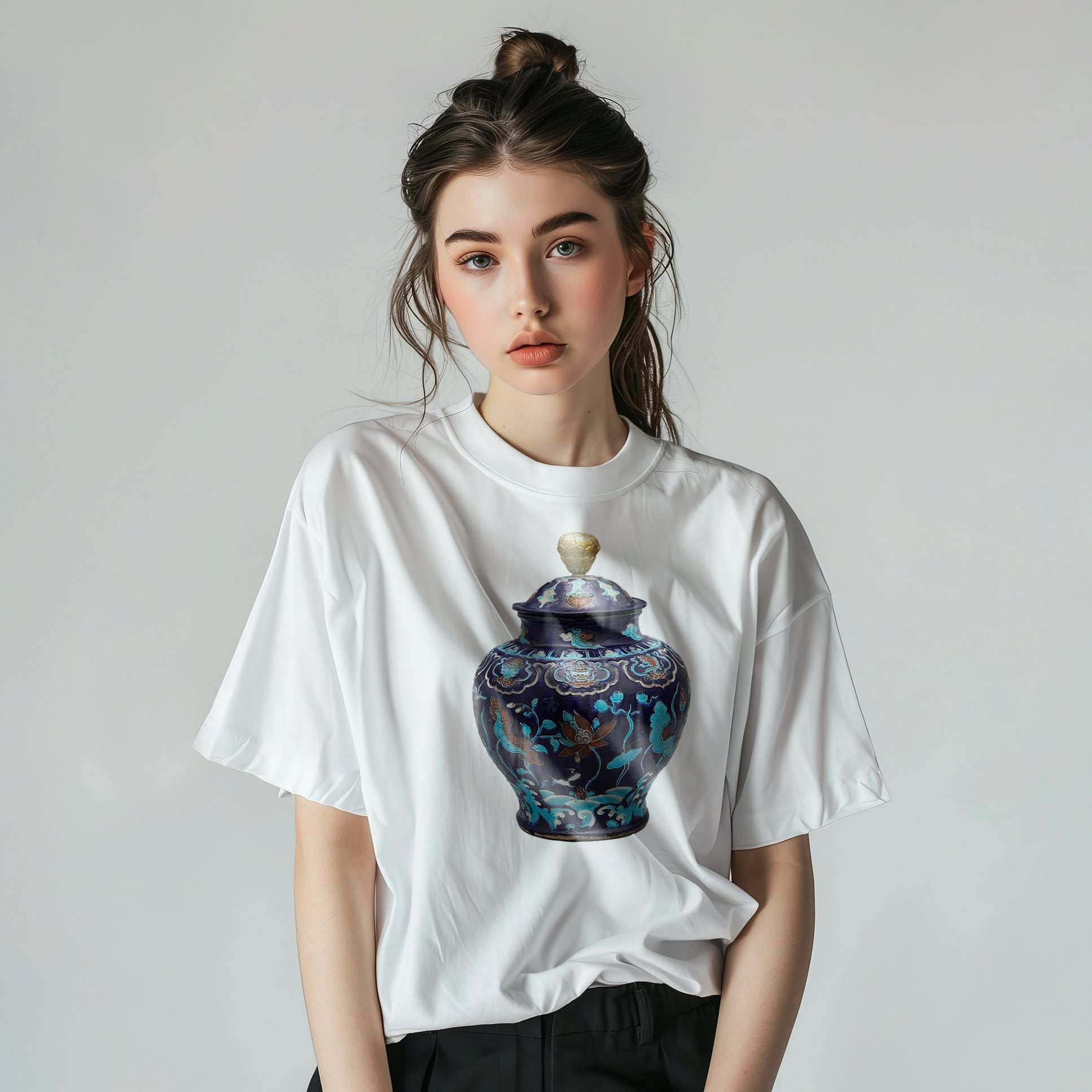 A porcelain jar from the 15th to 16th century, produced in Jingdezhen during China’s Ming dynasty. Jingdezhen, a world-renowned kiln site, crafted this piece using the fahua technique, a type of sancai (three-color ware). The jar features a cobalt-glazed base, with vivid patterns in purple, blue, green, and white applied in sections. Some areas are further enhanced with transparent lacquer over gold and silver, adding brilliance to the design.