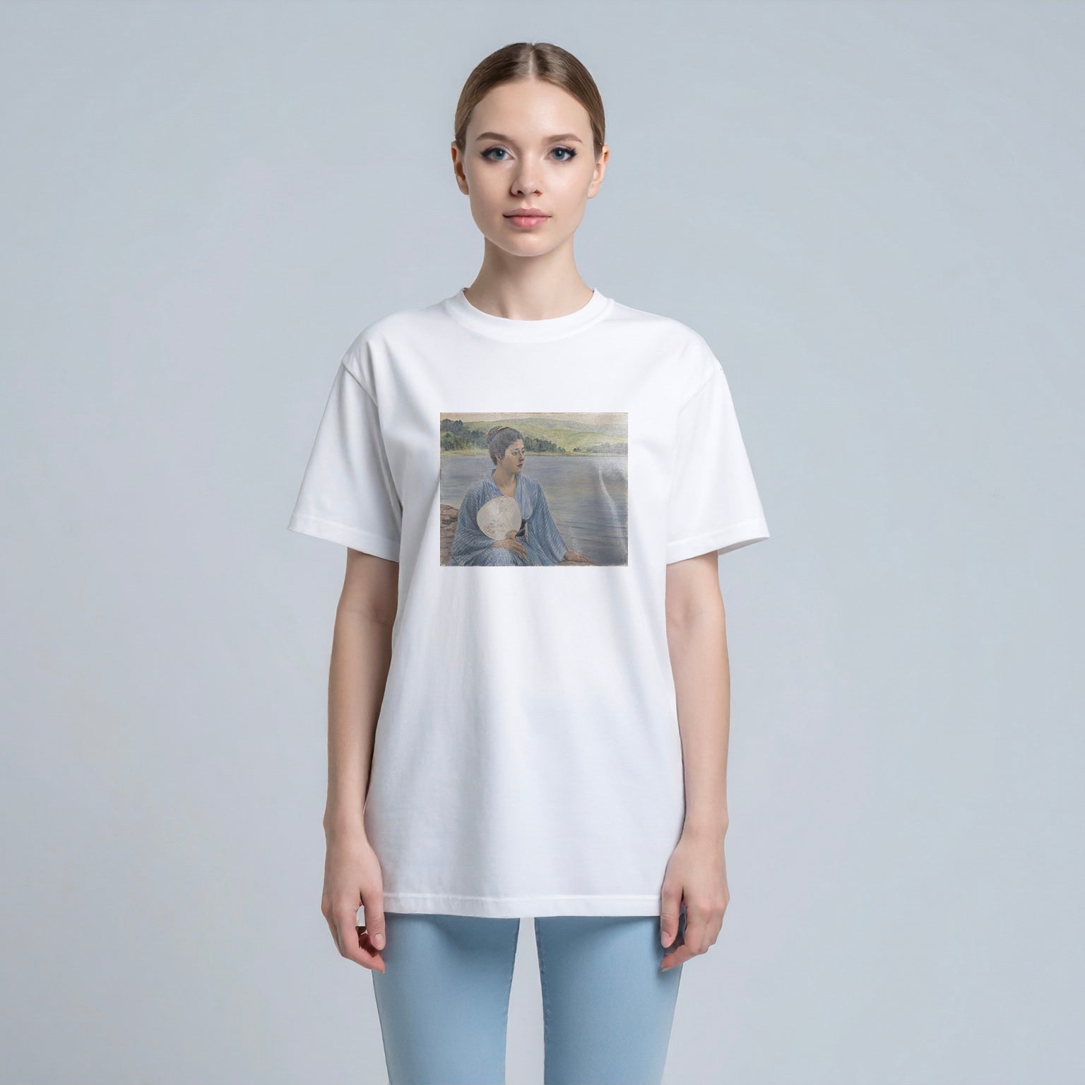 This painting portrays a woman wearing a yukata, seated by Lake Ashi in Hakone, holding an uchiwa (paper fan) to keep cool. Initially titled "Summer Retreat," the work skillfully captures the moist, refreshing atmosphere of the highlands during summer. According to the model’s recollection, the painting took about a month to complete.