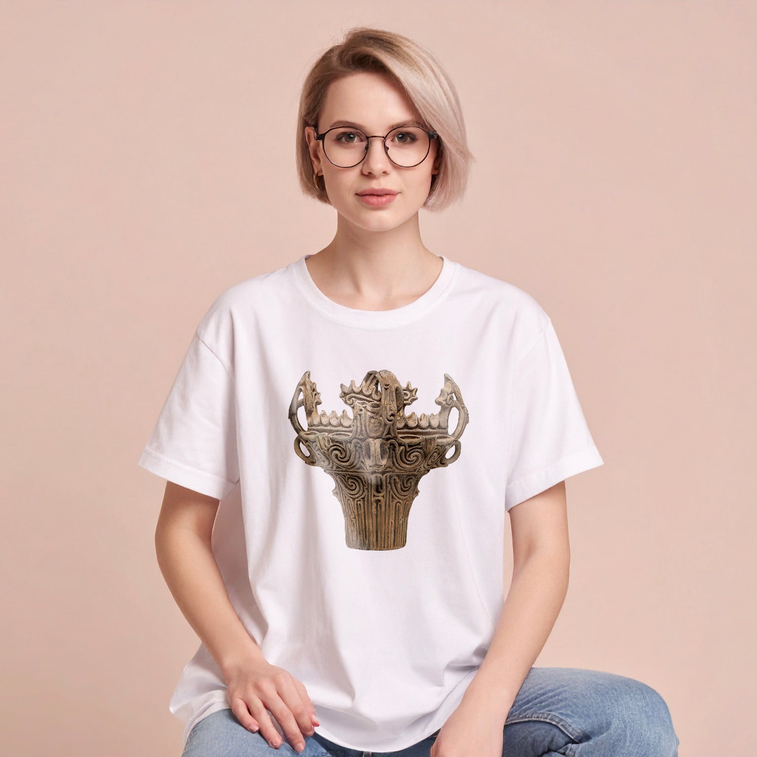 This earthenware was so named because its large, rising protrusions look like a burning flame. This Jomon earthenware combines intensity and elegance, and is richly decorated. It has been found at more than 200 ruins in eastern Japan, with a concentration of excavations in Niigata Prefecture. Some were unearthed with scorched food attached to their inner surface. One can imagine that ancient people might have used them to cook nuts, meat and fish.